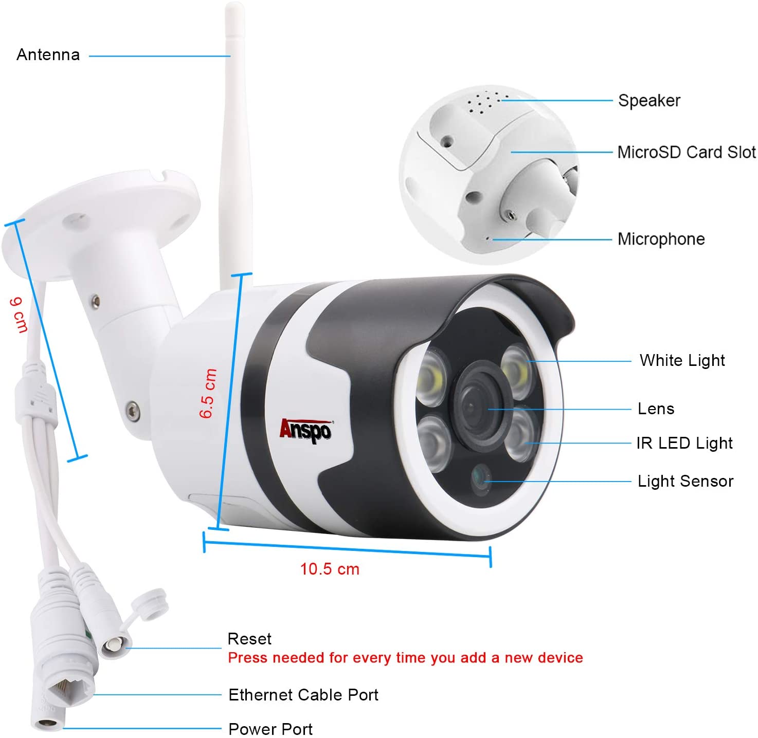 This New full High Definition (HD 1080 Pixels) WiFi wireless CCTV camera is your best choice for your home or business security. It features a modern look with two Wide-angle infrared lights, two bright LED lights, HD 1080P resolution lens, with full color day and night vision of up to 60 Feets .
